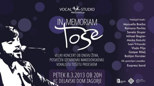 Odlični pevci iz Hrvaške in Slovenije bodo ob spremljavi izvrstne inštrumentalne zasedbe Express band, izvajali najlepše skladbe Tošeta Proeskega v hrvaškem, makedonskem, slovenskem in angleškem jeziku. Koncert, ki ima na hrvaškem že dolgoletno tradicijo, podpira uradna fundacija Tošeta Proeskega iz Makedonije, katere namen je ohranjati spomin na velikega umetnika. Koncert, ki bo potekal 8.3.2013 ob 20h v KC Delavski dom Zagorje, bo prvi v nizu koncertov tega mednarodnega projekta v Sloveniji. Na koncertu bodo nastopili : Manuella Brečko, Romana Pavliša, Sanela Stupar, Mihael Bogčev, Marko Košutić, Ivan Vrhovski, Vlado Pilja, Gašper Rifelj, Boštjan Korošec, Exspress band v zasedbi: Marjan Hvala – klaviature, Gašper Kržmanc – električna kitara, Luka Vinko – akustična kitara, Štefan Šarkezi – bas kitara Peter Tovornik – tolkala, Anže Žurbi – bobni.